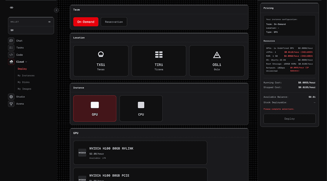 CPU and GPU workloads, browser and desktop sessions, studio workflows, and long-running jobs are metered by the Control Plane and settled only when work is executed.